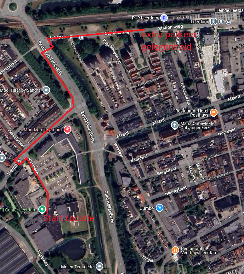 Startlocatie Het Dak (ingang Feel fit), Tiendweg 9, 4142 EG Leerdam.